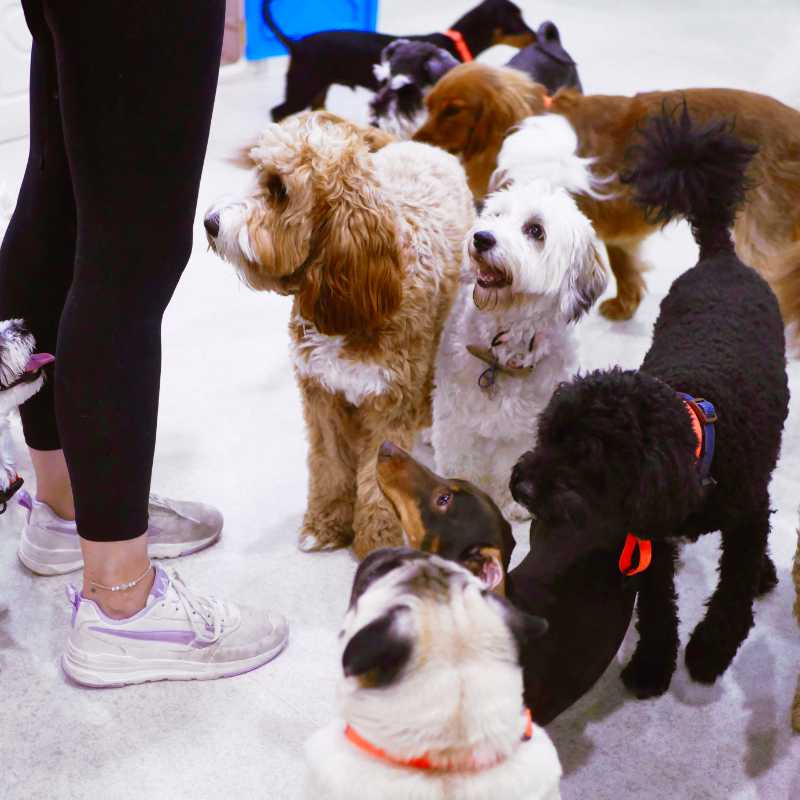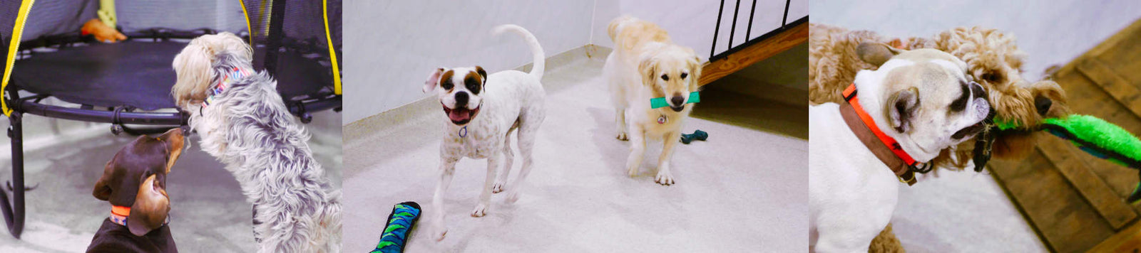 Slow down exercises like walks and individual attention to each dog within play area, such as massages and cuddles etc..